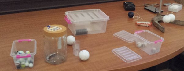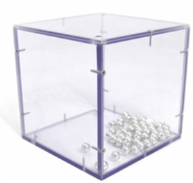 Lexan box containing 45 hollow aluminium balls.