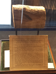 The image above left shows the Royal Astronomical Society’s own copy of the famous book. The image above right shows a section of an apple tree from Newton’s garden in Woolthorpe. This tree might have produced the apple that might have fallen on Newton’s head and given him the idea about gravity.