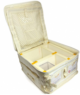 The above image left shows the bag closed ready for launch. The whole kit had to be vibration tested by Leicester University Space Research Centre to show it would survive launch, which can be rather bumpy. The above image right shows the crew transfer bag open to show how the equipment was packed. During launch the kit was also bubble wrapped and stowed in a zip-lock bag. Tim had to inspect each item for damage before he removed it from the bag.