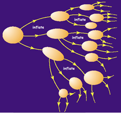 If a region inflates then it generally creates within itself, on minute length scales, the conditions for further inflation to occur from many of its parts. This process can continue into the infinite future, with inflated regions producing further subregions that inflate, and so on ad infinitum. The process has no end. It has been called the “eternal” or “self-reproducing” inflationary universe (Linde A., Sci. American, 1994, vol. 32). As yet, it is not known whether it need have a beginning.