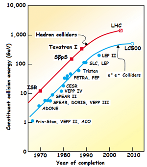 Accelerators have their own version of Moores’ law known as a Livingston plot. The energy of accelerators has increased by a factor of 10 every 10 years.