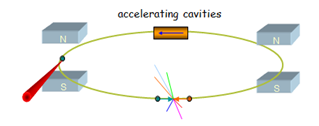 A magnetic field can be used to deflect the particles. The Lorentz force f = q(E + v x B). The LHC uses very strong magnets to keep its particles in a circular orbit.