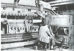 10 GeV weak-focusing Synchrophasotron built in Dubna in 1957, the biggest and the most powerful of its time. Its magnets weigh 36,000 tons and it was registered in the Guinness Book of Records as the heaviest in the world.