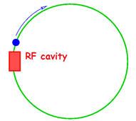 In an RF cavity the particles “surf” on an electromagnetic wave that travels in the cavity.
