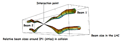 In the LHC, near the interaction points, the beam is only 64 micrometres wide (the size of a human hair)