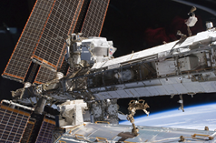 The Alpha Magnetic Spectrometer also designated AMS-02, is a particle physics experiment module that is mounted on the International Space Station (ISS). The module is a detector that measures antimatter in cosmic rays; this information is needed to understand the formation of the Universe and search for evidence of dark matter. It looks at smaller scales than the LHC.