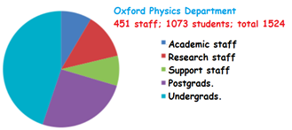 Athena Swan: Oxford physics department holds a silver award (Data from 2014/2015). The department also holds the Institute of Physics Juno Champion Status
