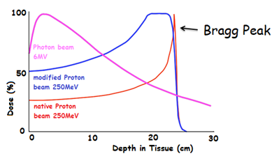 X-ray peak just under the skin. Protons can be placed better so the cancer gets most and the healthy tissue gets less. More precision required with protons, which is also more costly than X-rays.
