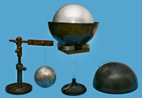 As described earlier a conducting sphere is suspended, using the support of insulating frames, within another conducting sphere, which may be divided into two hemispheres by hinges. Both conductors are initially uncharged. A conducting wire is placed connecting the inner and outer spheres. The outer sphere is then charged, and the wire was cut by means of a silk thread. After the outer sphere was disassembled, the inner sphere’s charge was measured by an electrometer.