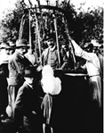 Hess lands after his balloon flight in 1912.