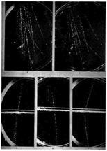 Extensive shower. Two cloud chambers several metres apart record an extensive air shower. (Wilson and Lovell, 1939)