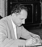 Bruno Pontecorvo (22 August 1913 – 24 September 1993) was an Italian nuclear physicist, an early assistant of Enrico Fermi and the author of numerous studies in high energy physics, especially on neutrinos. A convinced communist, he defected to the Soviet Union in 1950, where he continued his research on the decay of the muon and on neutrinos. The prestigious Pontecorvo Prize was instituted in his memory in 1995.