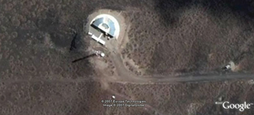 The above picture shows the Los Leones fluorescence detector of the Auger Observatory, on a hill overlooking above the ground array of surface detectors (one of which appears in the foreground). The project utilizes two techniques to detect these extremely rare particles. When they reach the Earth’s atmosphere, they generate a cascade of billions of particles which can be detected when they strike the ground with an array of surface detectors. In addition, on dark nights the sky glow (known as nitrogen fluorescence) generated by the passage of these particles can be imaged with telescopes located on the boundary of the array. There are a total of four nitrogen fluorescence detectors with six telescopes each. This image shows the Los Leones detector, built on the summit of an extinct volcanic mound, or cerro.