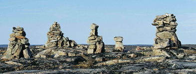 An inuksuk (plural inuksuit) (sometimes inukshuk in English) is a manmade stone landmark or cairn built for use by the Inuit, Iñupiat, Kalaallit, Yupik, and other peoples of the Arctic region of North America. These structures are found in northern Canada, Greenland, and Alaska (United States). This combined region, above the Arctic Circle, is dominated by the tundra biome and has areas with few natural landmarks.
