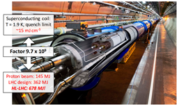 • stored beam energy = 8.5 GJ, equivalent to Airbus A380 at 850 km/h