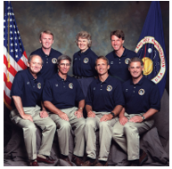 From left to right, Norman Thagard, Andrew Thomas, John Blaha, Shannon Lucid, Jerry Linenger, Michael Foale and David Wolf.