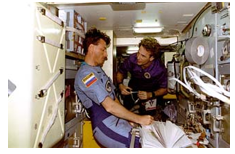 Dr Foale’s training regime included flights in T-38 jets and spending time wearing space suits in swimming pools. The swimming pool training could last 6 hours.