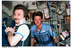 The collision had knocked Mir into a spin; and the power outage had shut down the gyrodynes so that the spin now went uncontrolled. To stop the spin and face the arrays toward the Sun, the crew needed to know the spin rate of Mir. However, the computer and other instruments were out of operation. So, in the dark and in the silence, Foale went to the windows in the airlock and held his thumb up to the field of stars. Combining a sailor’s technique with a scientist’s knowledge of physics, Foale estimated the spin rate of the space station. Then, he and Lazutkin radioed the estimates down to the Moscow Control Center. The ground controllers fired Mir’s engines, and that stopped the spin—certainly not perfectly, and in no way permanently; but it showed that it could be done.