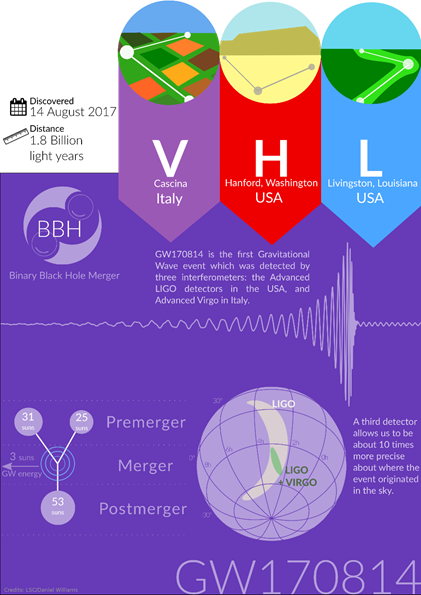 That mass was turned into energy, which caused the ripples in spacetime – gravitational waves – that LIGO detected 1.3 billion years later.
