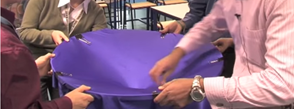 Or you can demonstrate this with the above arrangement, pulling down the centre of the cloth instead of using a ball. By pulling the cloth down by different amounts you can mimic objects of different masses.