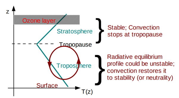 The temperature at the tropics is generally higher so you would expect the hotter air to go up. This not exactly what happens. Tropic convection can be a very rapid, violent motion.
