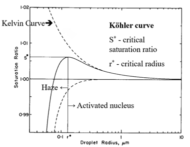 A Kohler curve combines both the curvature and solute effects i.e. the Kelvin and Raoult effect.