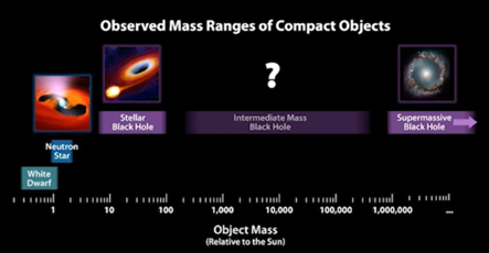 An intermediate black hole and its event horizon is about the size of a planet rather than a small town.