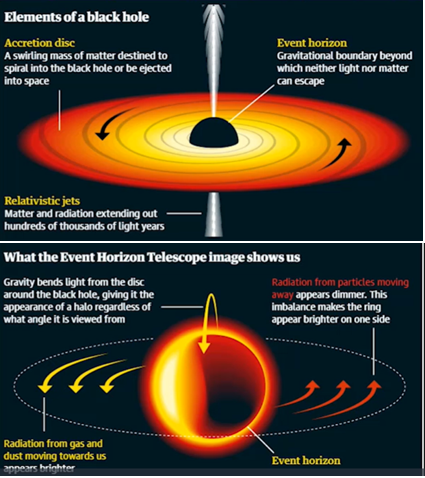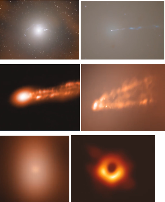 1) M87 accretion disc. One side is brighter – rotating very fast towards us. Relativistic boosting