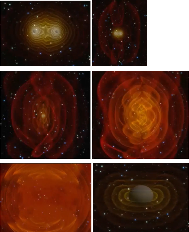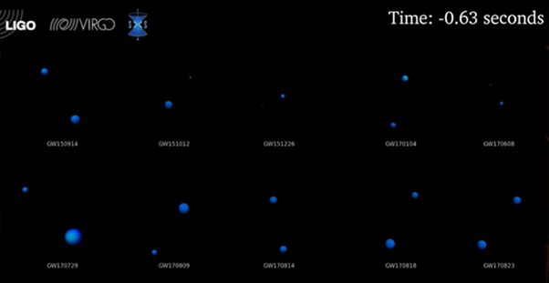 A visualization of the merging black holes that LIGO and Virgo have observed so far. The video shows numerical-relativity calculations of the black holes’ horizons and the emitted gravitational waves, during the final few orbits of the black holes as they spiral inwards, merge and ring down. Each numerical-relativity calculation is consistent with one of the observations in the LIGO-Virgo catalogue. As the horizons of the black holes spiral together and merge, the emitted gravitational waves become louder (larger amplitude) and higher pitched (higher in frequency). This movie is inspired by the Kepler Orrery.