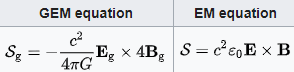 The GEM Poynting vector compared to the electromagnetic Poynting vector is given by