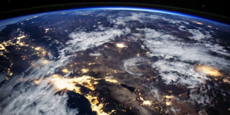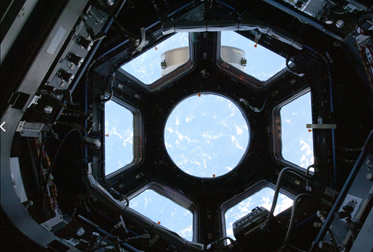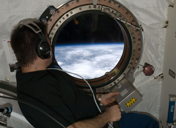 Peering out of the window of the International Space Station (ISS), astronaut Greg Chamitoff takes in the planet on which we were all born. About 350 kilometers up, the ISS is high enough so that the Earth’s horizon appears clearly curved. Astronaut Chamitoff’s window shows some of Earth’s complex clouds, in white, and life-giving atmosphere and oceans, in blue.