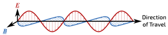 An electromagnetic wave. E and B are the electric and magnetic fields respectively. Figure adapted from original by P. Wormer under CC BY-SA 3.0