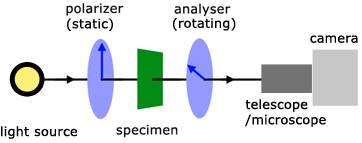Cross polarisation involves two polarising filters and the specimen is placed between the two.