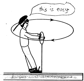 Another misunderstanding is that you can produce movement just by moving in an out while the turntable is stationary. The effect will only happen after you have been given an initial burst of energy, either by pushing with your feet or getting a gentle push from someone else.