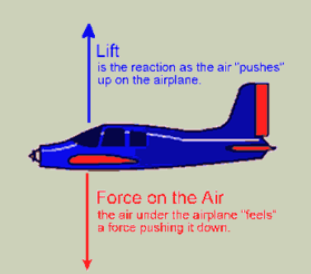 Law three is often written as “To every action there is an equal and opposite direction” but is often misunderstood. It is better to write is as “If body A exerts a force on body B then body B exerts an equal but opposite acting force on body A”. In other words, Newton’s third law says there must be pair of forces (known as Newton pairs) involved but it is important for you to realise that thrust and drag are not a Newton pair and neither is lift and weight. In other words, if something wants to move forwards, it must push something backwards. In a bicycle for instance, the parts of the wheels touching the ground are going backwards (because the ground itself can’t go backwards), so that the bike moves forwards. The force of the tyre on the ground is equal to the force of the ground on the tyre (but acts in the opposite direction).