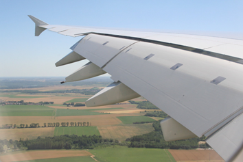 To solve this problem, aeroplanes have flaps on their wings, which are lowered when the plane comes into land. The flaps act as brakes, to slow the plane down, but also increase the lift of the wings, so that the plane does not stall at lower speeds, and can land safely on a smaller runway.