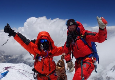 Lydia Bradey (right) and Roxanne Vogel on the summit of Mount Everest,