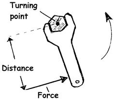 An example of a turning force in action is the use of a spanner to tighten or undo a nut.