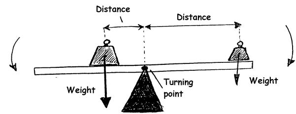 You may have experienced something like this in the playground, a seesaw. A heavy person can balance a lighter person by having the heavier person closer to the turning point (also known as the pivot point)