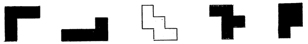 A five-piece jigsaw may have seemed simple at first glance, but it was difficult without a picture for guidance. The pieces all consisted of five squares arranged in different ways. These were called pentominoes.