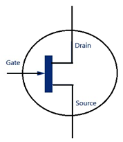 The above image shows the symbol for an N channel Field Effect Transistor (FET)