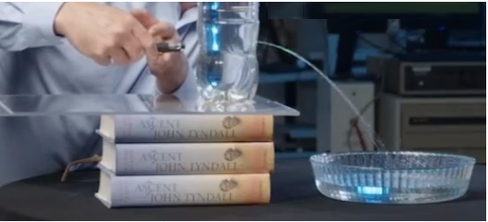 7) In Professor Hurley’s demonstration of light travelling in a water stream, why did the water only come out when the bottle lid was opened?