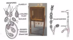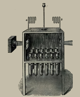 The above illustration originally appeared in year 1876 in “The optical deportment of the atmosphere in relation to the phenomena of putrefaction and infection” by John Tyndall in Philosophical Transactions of the Royal Society of London, Vol. 166, page 30. It depicts John Tyndall’s mid-1870s scientific setup for the long-term preservation of fresh food broths inside a semi-sealed wooden box. Intentionally, outside air is allowed to enter the box, but there is blockage of micro-organisms from entering the box. The two wavy objects labelled a and b at the top of the box are glass pipes. They are filled with densely packed cottonwool. These pipes connect the outside air to the air inside the box. Floating micro-organisms and other air particulates in the outside air are blocked by the cottonwool from entering inside. Tyndall said in 1871: “The inability of air which had been filtered through cotton-wool to generate microscopic life had been demonstrated by [Heinrich] Schroeder [in the 1850s] and Pasteur.” (Dust and Disease, 1871). For the box to be able to preserve fresh broths or other foods, the box cannot have micro-organisms inside it to begin with. For that objective, Tyndall came up with the idea of coating the inside walls and floor of the box with glycerin, which is a sticky syrup. After closing the box and waiting for a few days, he found the air inside the box becomes entirely particulate-free because the various floating-matter particulates all end up getting stuck to the walls or settling on the sticky floor. The glass vials at the bottom of the box are not coated with the glycerin. To sterilize the glass vials, Tyndall immersed them in boiling water from underneath the box, for half an hour, after the air had cleared. The two windows on the sides of the box are there to enable verification that the air inside the box does not contain floating micro-organisms or other particulates. Finally, newly boiled meat and vegetable broth is dropped into the glass vials via the long pipette at the top centre of the box. At the spot where the pipette enters the box, the box material is rubber, and the rubber is pierced with just a pinhole to let the pipette enter. This system worked for Tyndall in 1875. But it failed in 1876. Tyndall traced the failure to bacterial endospores which are not killed by boiling. He then originated a way to destroy the endospores, called Tyndallization, which historically was the earliest known effective way to destroy endospores.