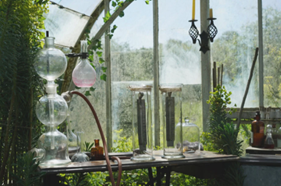 With this setup Tyndall observed new chemical reactions produced by high frequency light waves acting on certain vapours. The main scientific interest here from his point of view was the additional hard data it lent to the grand question of the mechanism by which molecules absorb radiant energy.