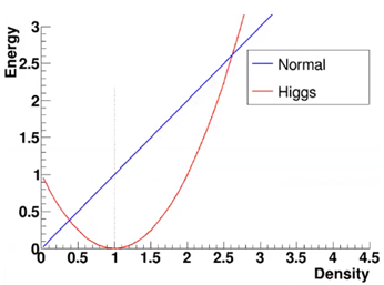How would physicists know? Well at the moment there isn’t a good enough measurement, but physicists would like to measure how Higgs particles interact with each other. That’s what makes this density look the way it does.