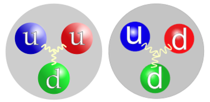 A proton was made up two up quarks and one down quarks. A neutron was made up of two down quarks and one up quark