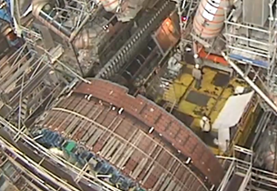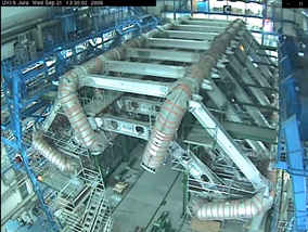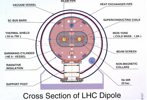 So, it’s a kind of balance. Once you’ve got half the heat blocked (half the heat is coming from one source and half coming from another). There’s a reduced advantage in making a huge effort to block either of them. So, it’s a balance but yes. Those feet, are real problem. They’re also a problem because if you take those magnets, which are 15 meters long, and you make them at room temperature, then cooling them down to minus 271 causes them to shrink several centimetres. But the outside bore of the pipe is at room temperature still. So, the inner bore is contracting several centimetres. The outer bore is not. So, out of the three feet the middle one is bolted down so the other two have to slide in and out as the equipment warms up and cools down. We don’t like warming up the magnets if we can avoid it.