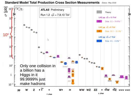 So far there has been no mention of the Higgs. There was no mention of it on the “20th century Standard Model” slide. This was the model that physicists had accepted and were using from 1973 to 2012. But this model had a contradiction. All the particles, such as the W and Z bosons, were supposed to be massless, but this was clearly not true.
