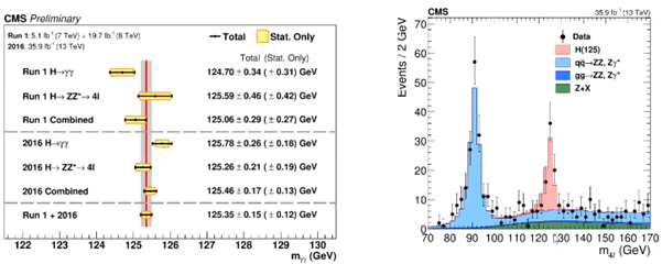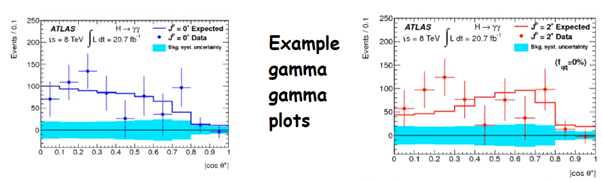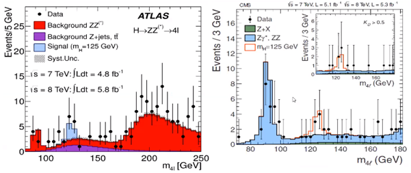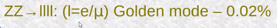 Higgs decaying to two photons (BR of 0.002) or the Higgs decaying to two Z bosons which in turn decays to four leptons (BR of 0.002)