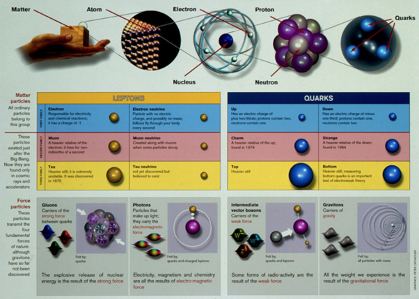 In the first half of the twentieth century physicists had recognised that atoms, which are the smallest unit ordinary matter that form chemical elements, had a nucleus consisting of protons and neutrons with electrons going around it.